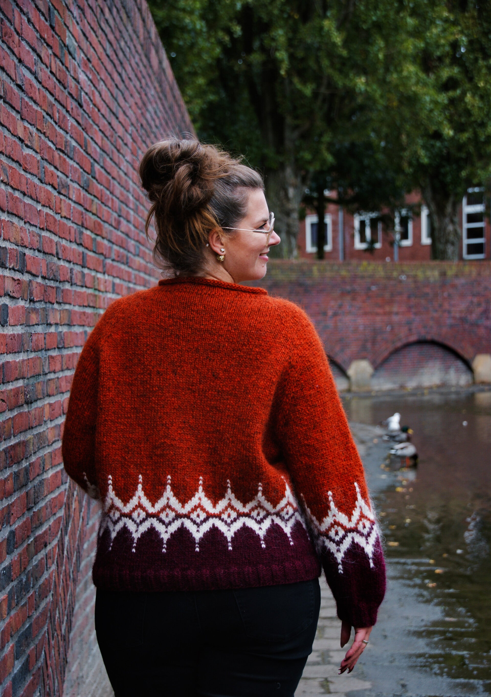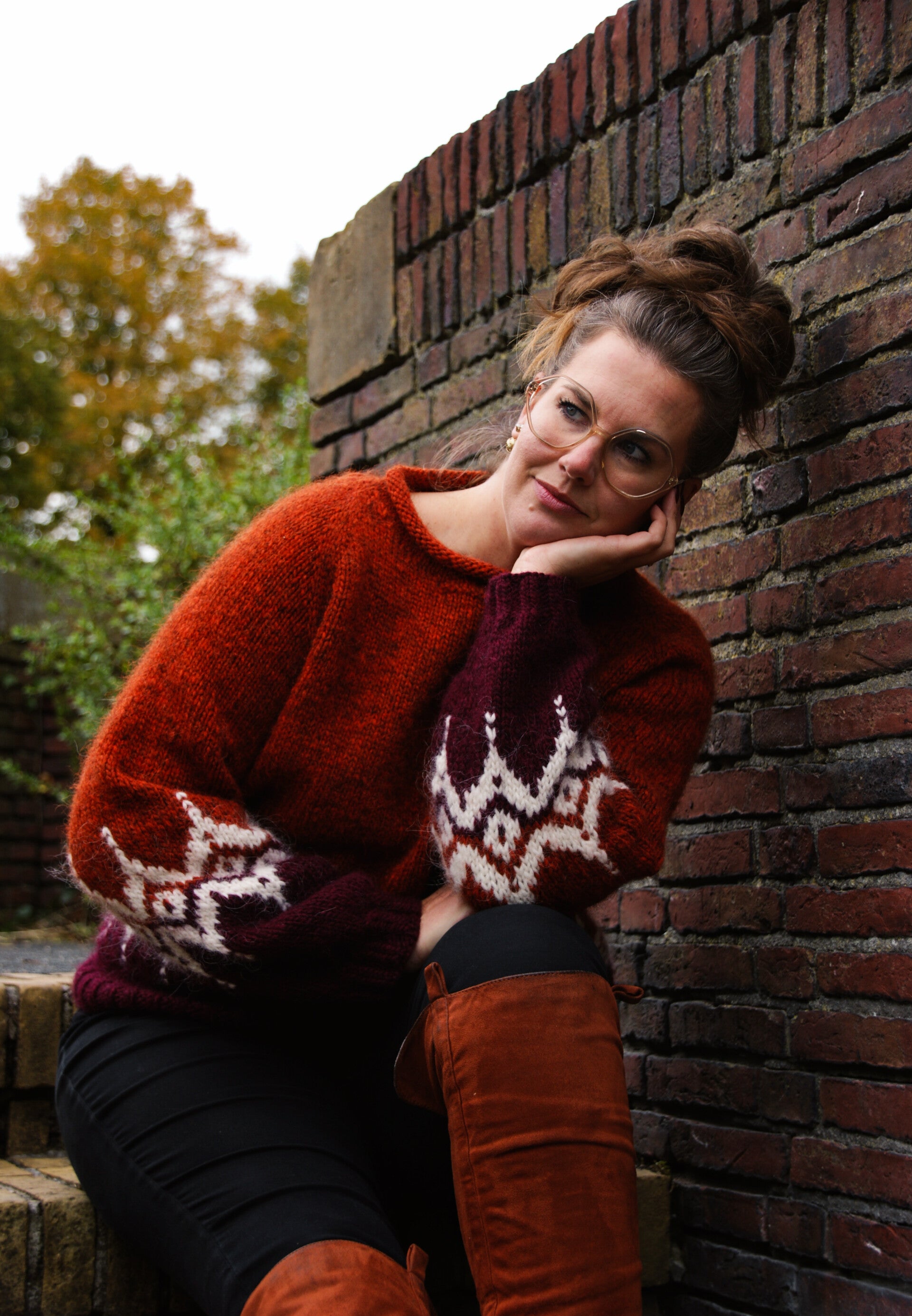 My Inspiration for this sweater comes from the beautifull country of Iceland. During a holiday I was inspired and this sweater emerged from my needles. Thingvellir sweater is knitted top down and has raglan sleeves. The clear white pattern stands out beautifully and brightly against the two-colored background. The sweater has an oversized fit. Size as shown in the photo: 44