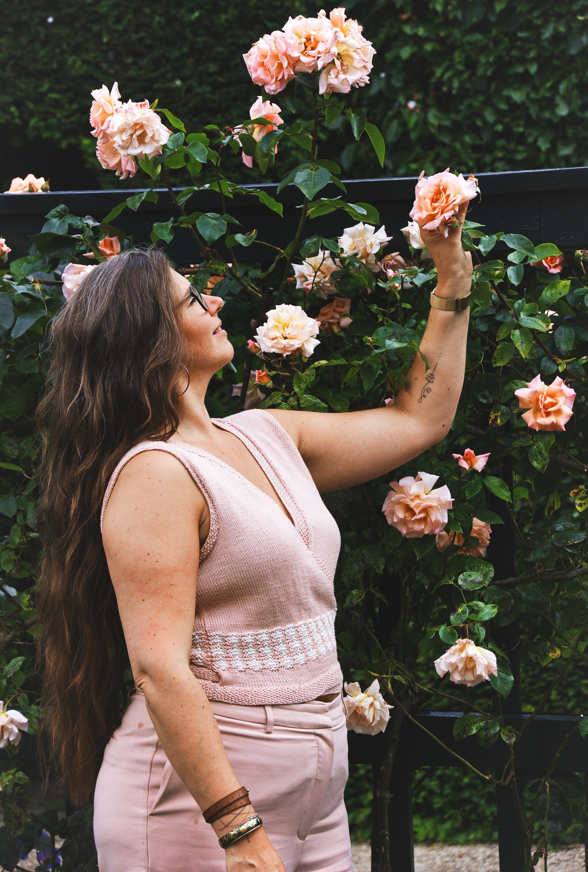 The Mosaic wrap top consists of 3 panels that are knitted separately. The pattern consists of a written explanation, accompanied by a color chart of the mosaic pattern to be knitted. The borders are knitted in moss stitch, which gives the whole a subtle and soft look!