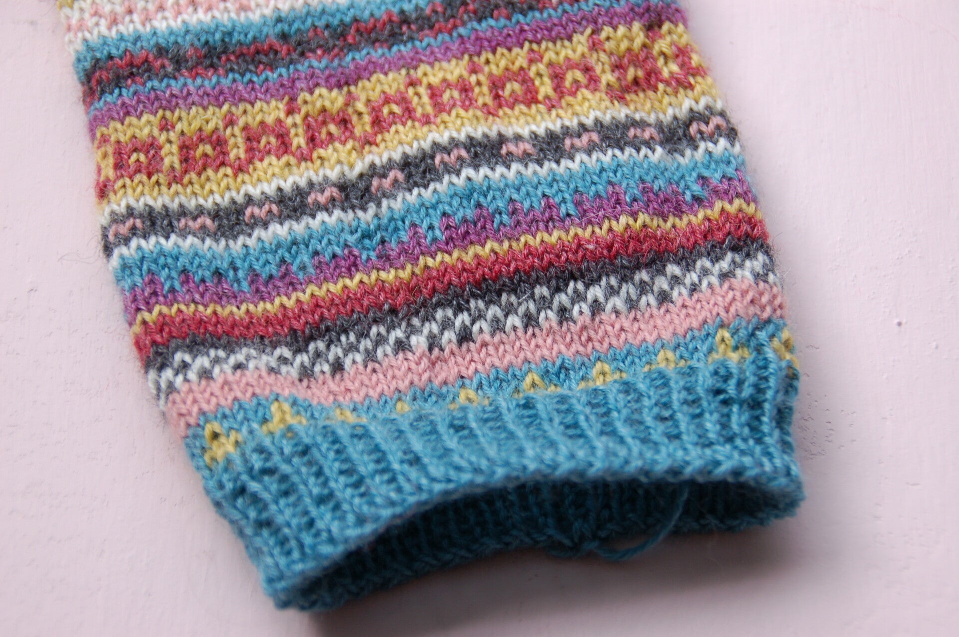 These leg warmers are knitted for a calf size of 33 cm. Because you insert, the part in fair isle pattern is slightly less flexible than the border. For a larger size, I recommend adding 2 stitches per extra 1.5 centimeters. Especially if you also want to wear it over your pants.