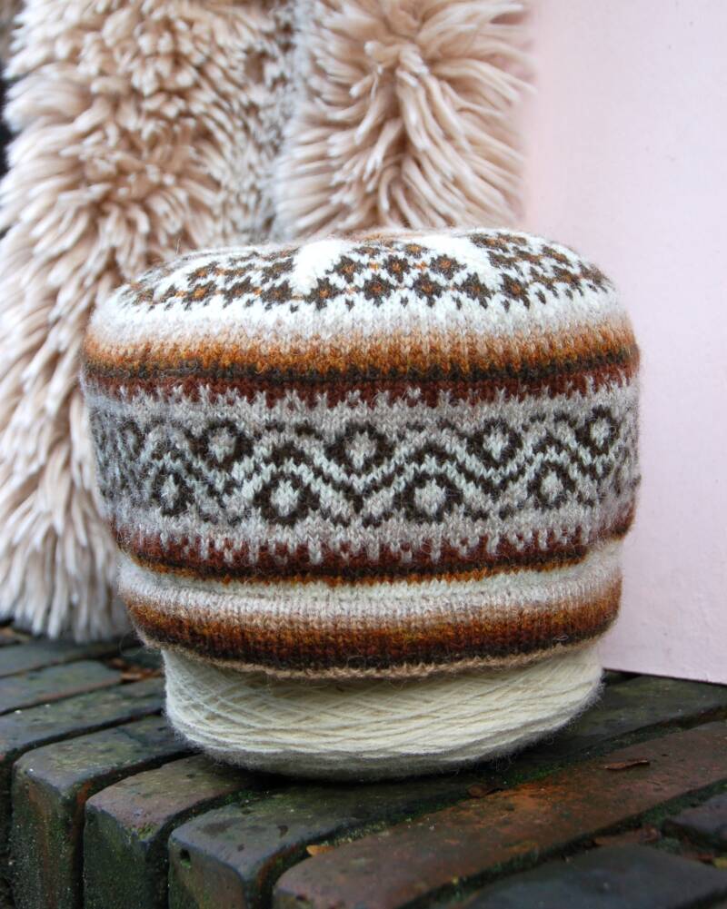 Knit you’re wildest dreams! Of niet natuurlijk.. Twee dingen zijn zeker: Je houd je hoofd warm, én je valt lekker op met deze muts gebreid van 100 % wol!
